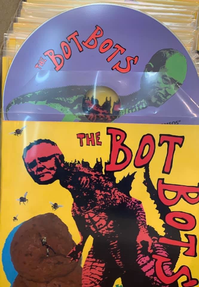 FRIDAY: Everyone is rooted from posting their top 10 influential albums on Crackbook. THE BOTBOTS are due to rehearse at 9pm, and it’s best described as a speed shit. One of the songs was written that week; another needs to arc up the Pentecostal factor in the lyrics department. THE BOTBOTS’ Elder Statesman and guitarist, Ronny Wreckless, is infectiously electric; drummer G. Ardia’s doubled down after recording all day; frontperson Sean’s already shared everything on social media, and Spewy is thinking about his Frankenstein bass rig and a future turd that will fuck up G. Ardia’s toilet.